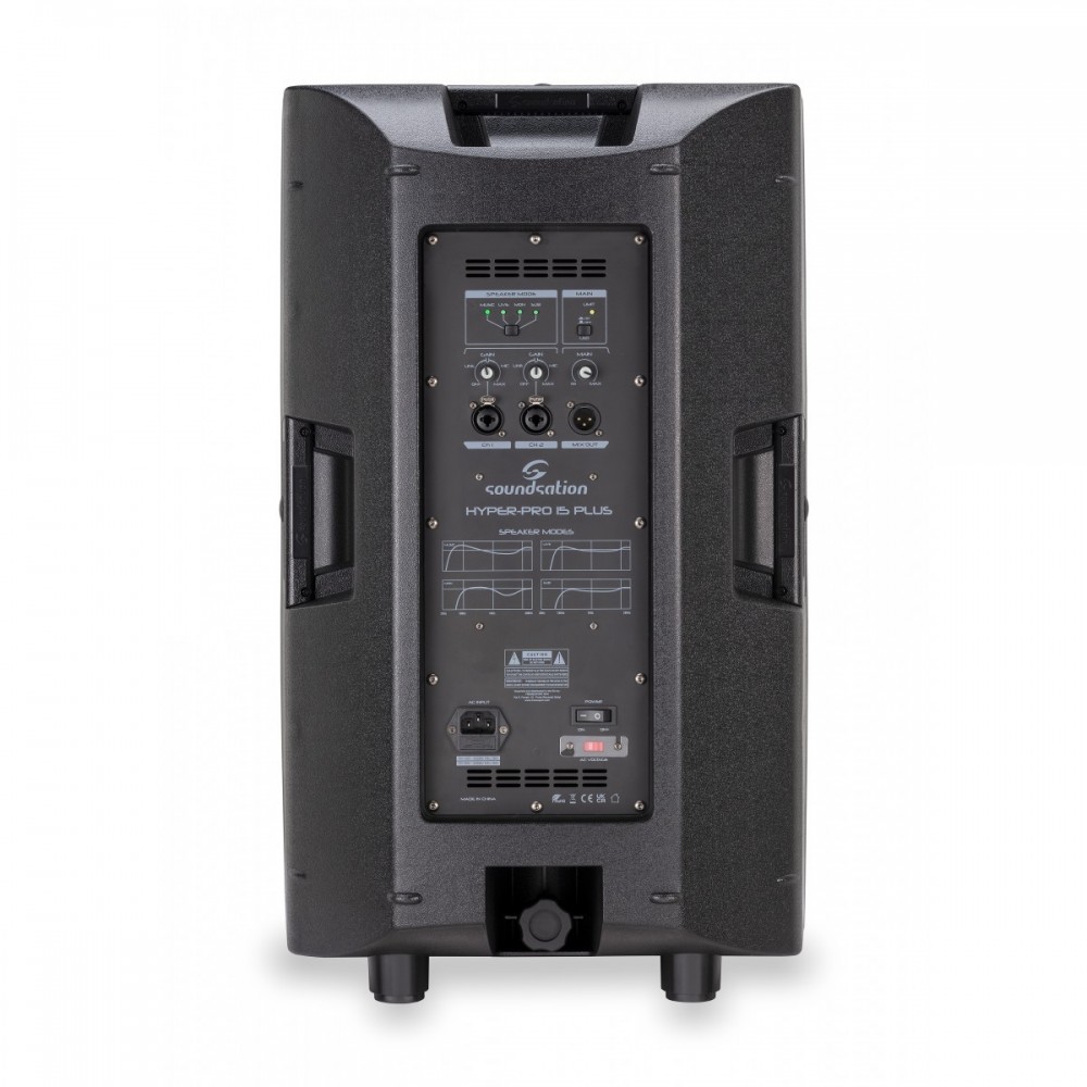 I nuovi diffusori Hyper-Pro Plus rappresentano una nuova tappa importante nella evoluzione della ormai famosa serie Hyper di Soundsation. Integrano la potenza, la qualità audio e la praticità dei modelli precedenti con l'essenzialità delle funzioni realmente necessarie a chi usa professionalmente un diffusore come strumento di lavoro. Amplificatori in Classe-D da 700W continui, woofer e driver a compressione selezionati, DSP per il controllo del Crossover, dell'EQ, del Limiter a 2-Bande, l'allineamento di fase e l'ottimizzazione del ritardo woofer e driver a compressione, garantiscono prestazioni elevate e massima qualità audio in qualsiasi condizione di utilizzo. Il pannello di controllo prevede due ingressi Mic/Line XLR-Combo, l'uscita Mix e 4 Programmi audio (Music, Live, Monitor, Speech) per adattare in modo rapido il diffusore ai principali utilizzi. Il cabinet elegante e robusto e progettato in modo da consentire l'uso in verticale a pavimento o su palo/tripode da 35mm, e l'installazione sospesa in orizzontale o verticale grazie ai 4 punti di fissaggio M8.