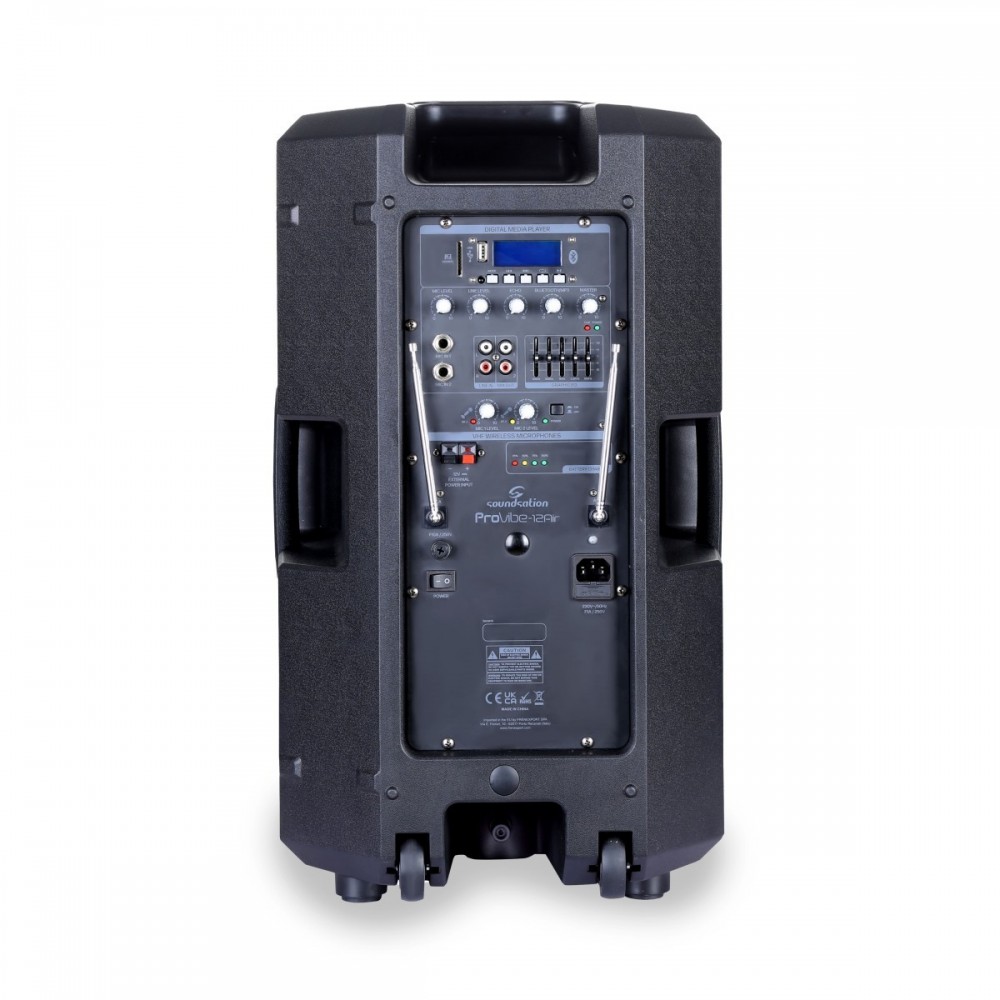 ProVibe 12Air da una parte riprende lo stile Soundsation nei sistemi PA compatti; dall'altra rappresenta anche un punto di svolta grazie ad una veste aggiornata e con caratteristiche professionali. L'alimentazione a batteria o corrente, il trolley con manico telescopico, i due radiomicrofoni VHF, il Player con USB/SD-card/Bluetooth, Ingressi Mic/Line, effetto Eco, EQ a 5-Bande sono combinate in un cabinet leggero, robusto ed elegante. Il controllo tramite app gratuita "Go-Sound Air" per dispositivi Android® e iOS®, permette al vostro device non solo di suonare le vostre play list, ma anche di controllare volume, EQ e ingresso Aux da remoto. Il woofer da 12" e il driver a compressione da 1" sono pilotati da un amplificatore in Classe AB con potenza di picco fino a 800W. L'alimentazione, oltre che con cavo di alimentazione a corrente e con batteria interna ricaricabile con durata fino a 7 ore, è possibile anche con alimentazione ausiliaria a 12V DC come, ad esempio, quella di una automobile. L'housing, dal look elegante e professionale, ha una architettura vented con aperture bass-reflex negli angoli inferiori vicino al woofer. La guida d'onda simmetrica ha una copertura angolare 90° (H) x 60° (V). La parte posteriore consente l'uso in orizzontale – tipo monitor da palco – con angoli di 45°. Sono infine presenti 3 punti di aggancio M8 per il fissaggio sospeso e il foro da 36mm per uso su palo o tripode.