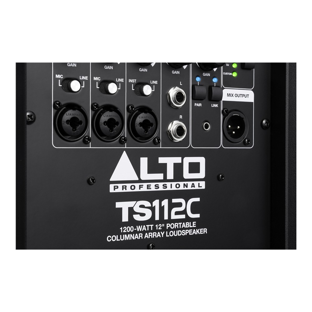 Alto Pro TS112C è un sistema PA a colonna compatto e potente, progettato per offrire un’elevata pressione sonora con la portabilità che musicisti, DJ, istruttori e locali moderni richiedono. Con i suoi 1200 watt di potenza di picco (600W RMS: 400 sulle basse e 200 sulle alte), distribuiti in una torre elegante e trasportabile, la colonna Alto TS112C è un’ottima soluzione per service, locali, teatri, pub, piccoli club e ristoranti che necessitano di audio professionale in un formato dall’ingombro contenuto. Il subwoofer da 12", il mixer digitale a 5 canali con riverbero e connessioni Bluetooth con Stereo Link costituiscono un sistema di amplificazione completo, pronto per un utilizzo immediato: collega, accendi e suona.