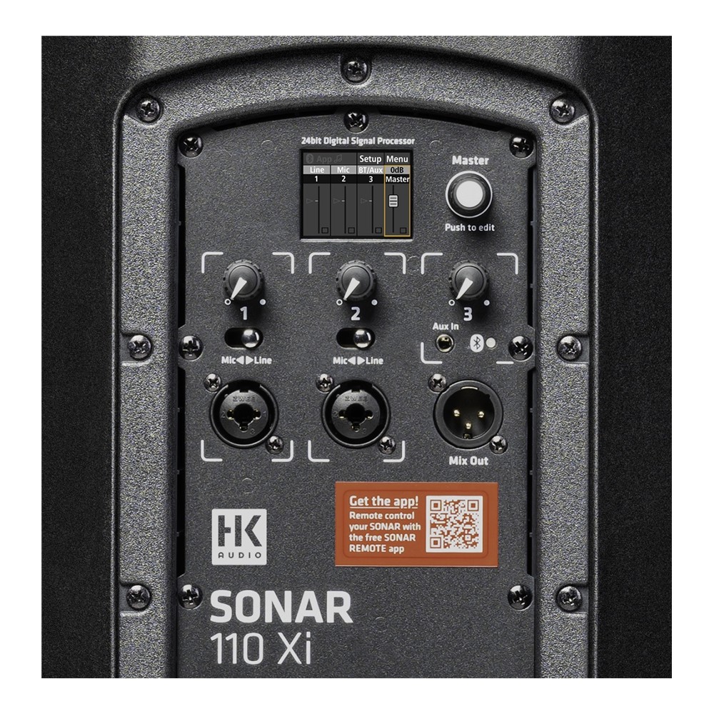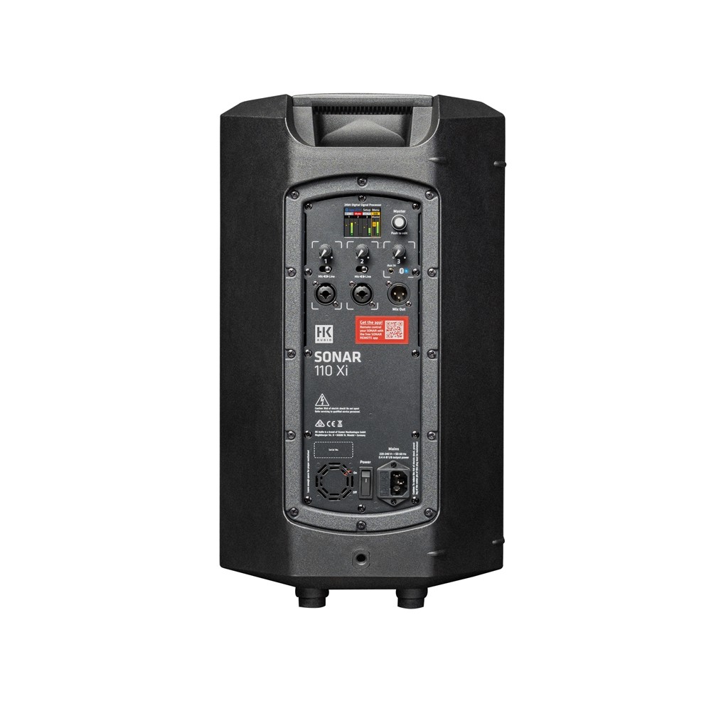 HK Audio Sonar è un diffusore attivo con driver da 10" con DSP e mixer integrato. Offre tre canali di ingresso: due per segnali microfonici o di linea più un canale Aux, riceve segnali analogici e tramite Bluetooth 5.0. La musica può essere trasmessa in stereo a due altoparlanti Sonar Xi tramite Bluetooth TWS (True Wireless Stereo). Comprende un controllo di volume e l'equalizzazione a 3 bande per ciascun canale che possono essere regolati in modo intuitivo utilizzando la manopola e il display a colori. Grazie all'app gratuita Sonar Remote (per iOS e Android), tutte le funzioni possono essere controllate anche da remoto per una maggiore comodità.