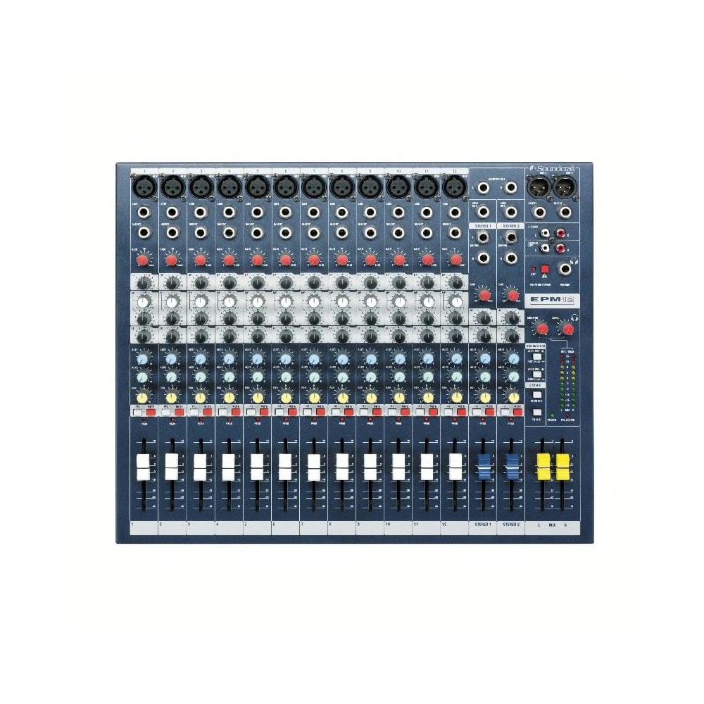 Serie di mixer multipurpose dal costo estremamente contenuto, rivolto a piccole realtà di live music, recording, luoghi di culto e installazioni commerciali. Nella progettazione del nuovo EPM, Soundcraft ha rivolto particolare attenzione sulla qualità dei componenti, per la miglior resa dell'audio, e su un approccio estremamente intuitivo all'uso, perché i controlli di cui è stato dotato sono solamente quelli essenziali. La tecnologia interna è di tipo surface mount con componentistica ad elevata precisione, così che le impostazioni di EQ e guadagno possono essere condotte in modo estremamente accurato. I mic preamp GB30 (progettati da Graham Blyth in occasione del 30° anniversario dell'azienda, e già implementati nelle console serie LX7II e GB) offrono regolazioni ad alta risoluzione su un range dinamico di 55dB, per un headroom disponibile di ben +22dB. L'alimentazione phantom 48 Volt permette l'utilizzo di microfoni a condensatore di qualsiasi tipologia. Una caratteristica unica del banco è il LED di picco per il monitoraggio del segnale. Questo controllo mantiene traccia di eventuali overload misurati su diversi punti della catena di canale, illuminandosi sempre più brillantemente quanto più il segnale si avvicina al valore di picco. Per un controllo di canale dolce ed accurato, l'EPM dispone di fader da 60mm ad alta qualità. Le uscite monitor e cuffia lavorano in parallelo, permettendo l'ascolto contemporaneo per l'artista, in cuffia, e per il tecnico attraverso gli studio monitor.