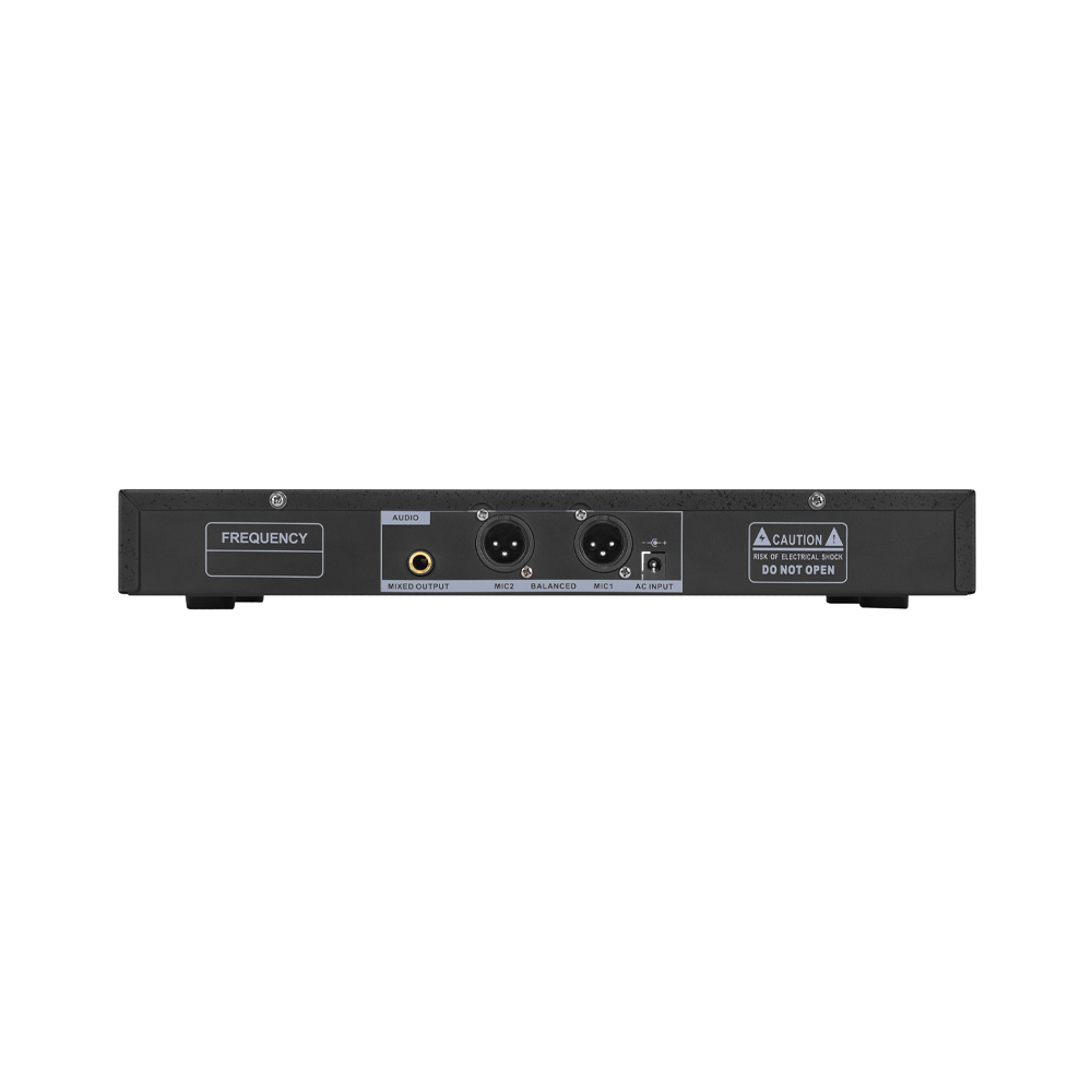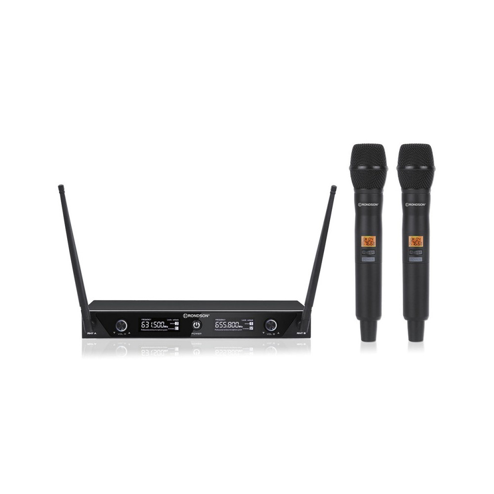 Set di due radiomicrofoni palmari UHF di qualità professionale. Il ricevitore UHF a doppio canale è dotato di moduli ricevitori sintetizzati con due frequenze fisse di 655/669 MHz PLL selezionabili. Il sistema di ricezione automatico anti-interferenza permette il funzionamento simultaneo di più unità ad una distanza operativa di 50 metri. Visualizzazione delle funzioni su schermo LCD Funzione "sync" ad infrarossi per trasmettere la frequenza ai trasmettitori Ideale per applicazioni vocali o audio professionali, discorsi, animazioni, ecc.