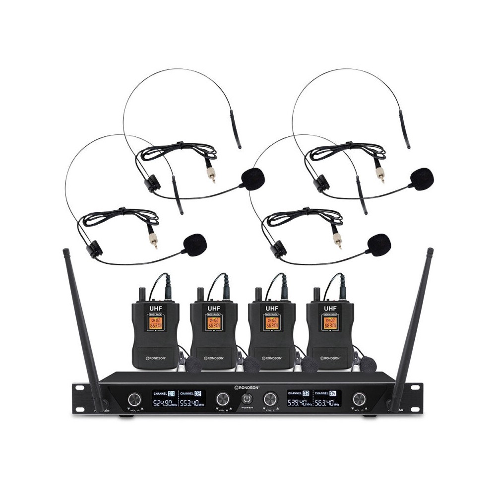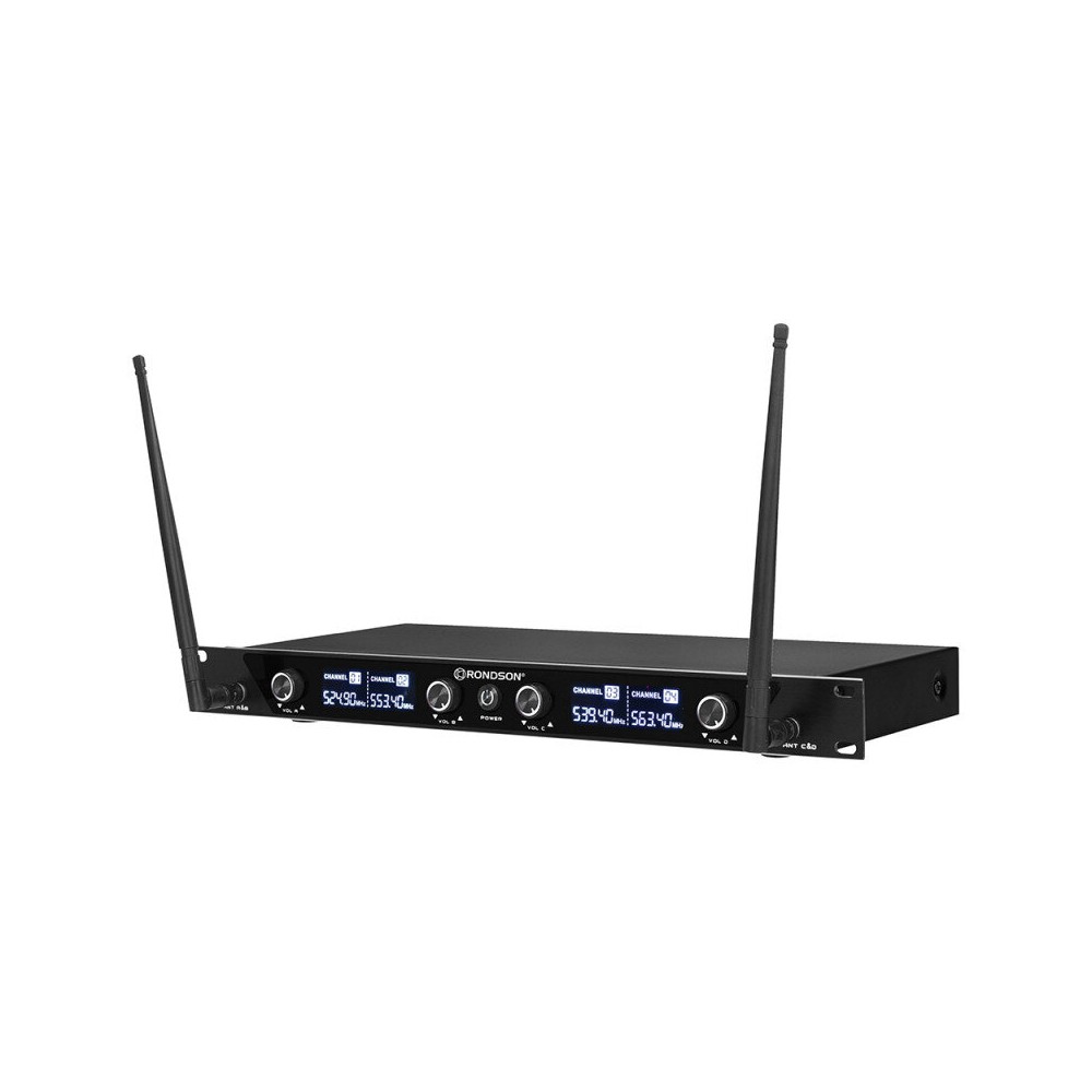 Rondson BE-1040/4BP è un sistema microfonico wireless UHF composto da quattro trasmettitori da tasca completi di microfoni ad archetto e un ricevitore a quattro canali montabile in una unità rack 19". Compatto e di semplice utilizzo offre un'eccellente qualità dell'audio. Il ricevitore è dotato di moduli riceventi PLL sintetizzati selezionabili. Sono disponibili 8 bande di frequenza RF nel range 506.0 - 687.1MHz. Sistema di ricezione automatico privo di interferenze anche nelle configurazioni multicanale. Sincronizzazione tra trasmettitori e ricevitore tramite porta ad infrarossi. Offre un nitido display LCD per la visualizzazione delle informazioni di funzionamento. Ideale per presentazioni ma anche per canto se usati con microfoni headset o per strumenti musicali con apposito cavo.