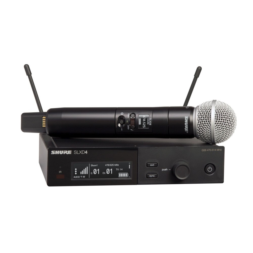 Il sistema wireless SLXD24D / 58 offre audio digitale cristallino a 24-bit e performance RF solide per un'ampia gamma di applicazioni, dalle presentazioni alle performance live. Aziona fino a 32 sistemi compatibili per banda da 44MHz, con una installazione semplice e gli accessori di ricarica (opzionali) per garantire un wireless eccellente, ovunque sia richiesto. E' composto da un ricevitore a doppio canale SLXD4, da un trasmettitore palmare SLXD2 / SM58 con antenna, accessori per montaggio a rack e 4 batterie AA.