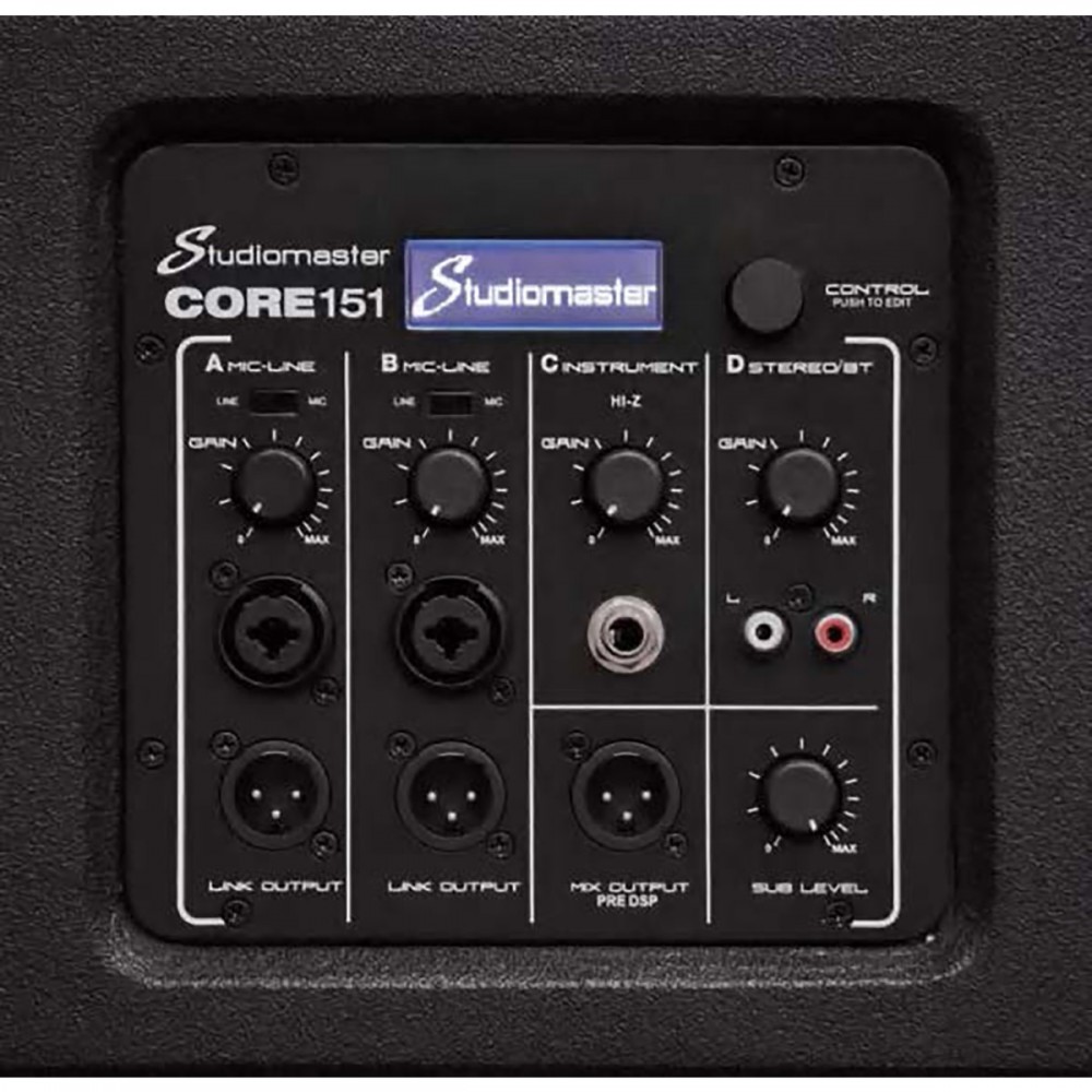 Il nuovo sistema CORE di Studiomaster utilizza un array con curvatura fissa appositamente progettato per fornire una diffusione sonora controllata ed estremamente efficace. Combinando l'array con un potente subwoofer a bass-reflex che eroga fino a 2800W di potenza in gamma bassa, l'intero sistema è in grado di fornire 4400W di picco (1100W RMS) in un sistema compatto e portatile che vi darà la portata e la qualità sonora che ci si aspetta da un sistema array ultracompatto. Per completare il sistema, il CORE è dotato di un mixer a 4 canali integrato, con controllo DSP e connettività Bluetooth®. Il sistema CORE è stato progettato per essere semplice da configurare e utilizzare. Il palo per diffusori regolabile e con sospensione pneumatica è dotato di cablaggio interno, quindi è sufficiente sollevare e posizionare il leggero array di curve in cima al palo. Collegare l'alimentazione e il gioco è fatto! Un vero e proprio sistema ALL-IN-ONE. Perfetto per qualsiasi performance.