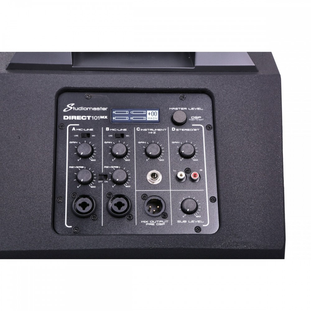Progettata per DJ, piccole band, presentazioni, corsi di formazione e luoghi di culto, la serie Direct MX è una soluzione PA a colonna all-in-one con un potente amplificatore incorporato da 2000 W, mixaggio completo a 4 canali, riproduzione Bluetooth 5.0 (con TWS) ed effetti di riverbero sui canali di ingresso. È in grado di riprodurre frequenze molto basse e alti chiari e musicali attraverso le casse in legno progettate su misura, che si collegano saldamente tra loro con un'esclusiva connessione interna, in modo da avere il PA configurato e pronto all'uso in pochi secondi. Tutti i modelli Direct sono dotati di 6 trasduttori midrange da 3 combinati con un driver a compressione da 1” per offrire alti chiari e nitidi alla voce o agli strumenti. Il subwoofer attivo da 10 offre una risposta incisiva in grado di riprodurre le frequenze più basse grazie al suo design bass-reflex. Il Direct 121MX è dotato di un mixer DSP a 4 canali, che comprende 2 ingressi MIC/LINE commutabili con controlli di gain e riverbero, 1 ingresso HI-Z per strumenti, 1 ingresso stereo RCA/Bluetooth e un'uscita di linea XLR. È presente anche un controllo indipendente SUB LEVEL per una rapida regolazione dei bassi. Una potente interfaccia DSP a 24 bit con display consente la regolazione di 3 modalità operative: Music, DJ, Speech. EQ a 3 bande con frequenze medie spazzabili e preset memorizzabili, controllo digitale del gain, filtro high-pass, limiter a doppio canale, delay digitale per zone di ritardo fino a 100 m (in passi da 0,25 m) e connessione Bluetooth, il tutto controllato tramite un semplice encoder ONE CONTROL.
