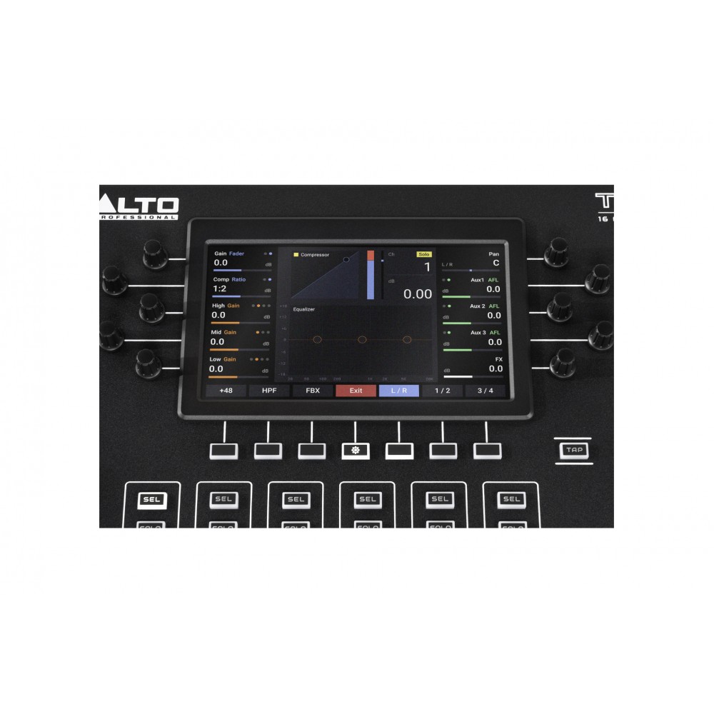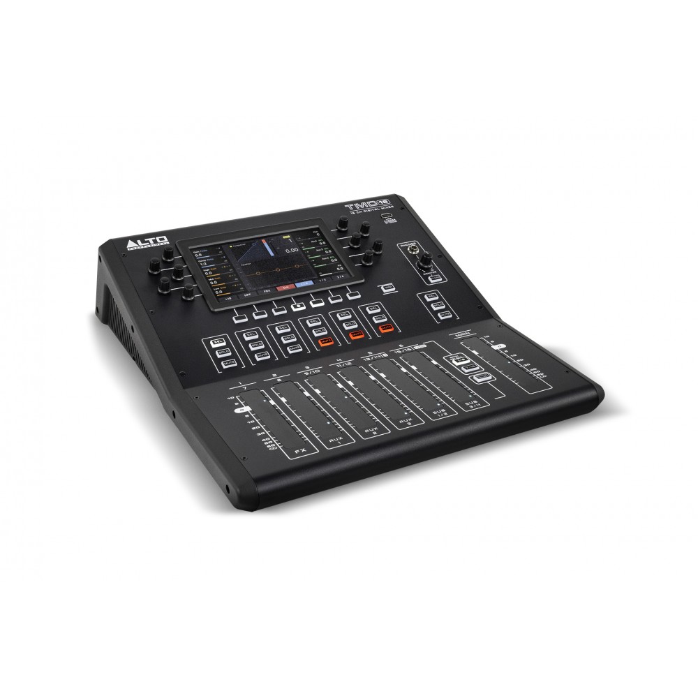 L’Alto Professional TMD16 è un mixer digitale professionale progettato per offrire qualità sonora e controllo avanzato in un formato pratico e intuitivo, ideale per l’uso quotidiano in contesti live, studi di prova, locali o luoghi di culto. Con 16 canali e un potente motore di mixaggio digitale, il TMD16 combina la versatilità della tecnologia moderna con l’immediatezza operativa dei mixer analogici tradizionali, offrendo un’esperienza d’uso fluida e senza compromessi. Grazie all’interfaccia fisica con fader capacitivi da 100 mm, encoder a pulsante, pulsanti retroilluminati e schermo a colori da 7”, ogni parametro è sempre sotto controllo senza dover navigare tra menu complessi. I preamplificatori microfonici digitali e le funzioni integrate per canale, come equalizzatore parametrico, compressore/limiter e effetti interni di livello studio (16 riverberi, delay, chorus e altro), assicurano un suono professionale in ogni situazione. Progettato per semplificare anche le produzioni più articolate, il TMD16 consente routing avanzato, preset di scena, subgruppi e percorsi di segnale personalizzati. È inoltre dotato di Bluetooth integrato e compatibilità USB plug & play per registrazioni stereo, streaming o riproduzione diretta da PC e Mac, con la possibilità di controllo remoto tramite app Alto Mix Control. Robusto e affidabile, con chassis in metallo e componenti pensati per un uso intensivo, il TMD16 è una soluzione all-in-one per chi desidera un mixer compatto, portatile e pronto a garantire prestazioni di livello professionale senza la necessità di attrezzature aggiuntive o competenze tecniche avanzate. Un mixer digitale di nuova generazione, pensato per rendere ogni performance semplice, potente e impeccabile.