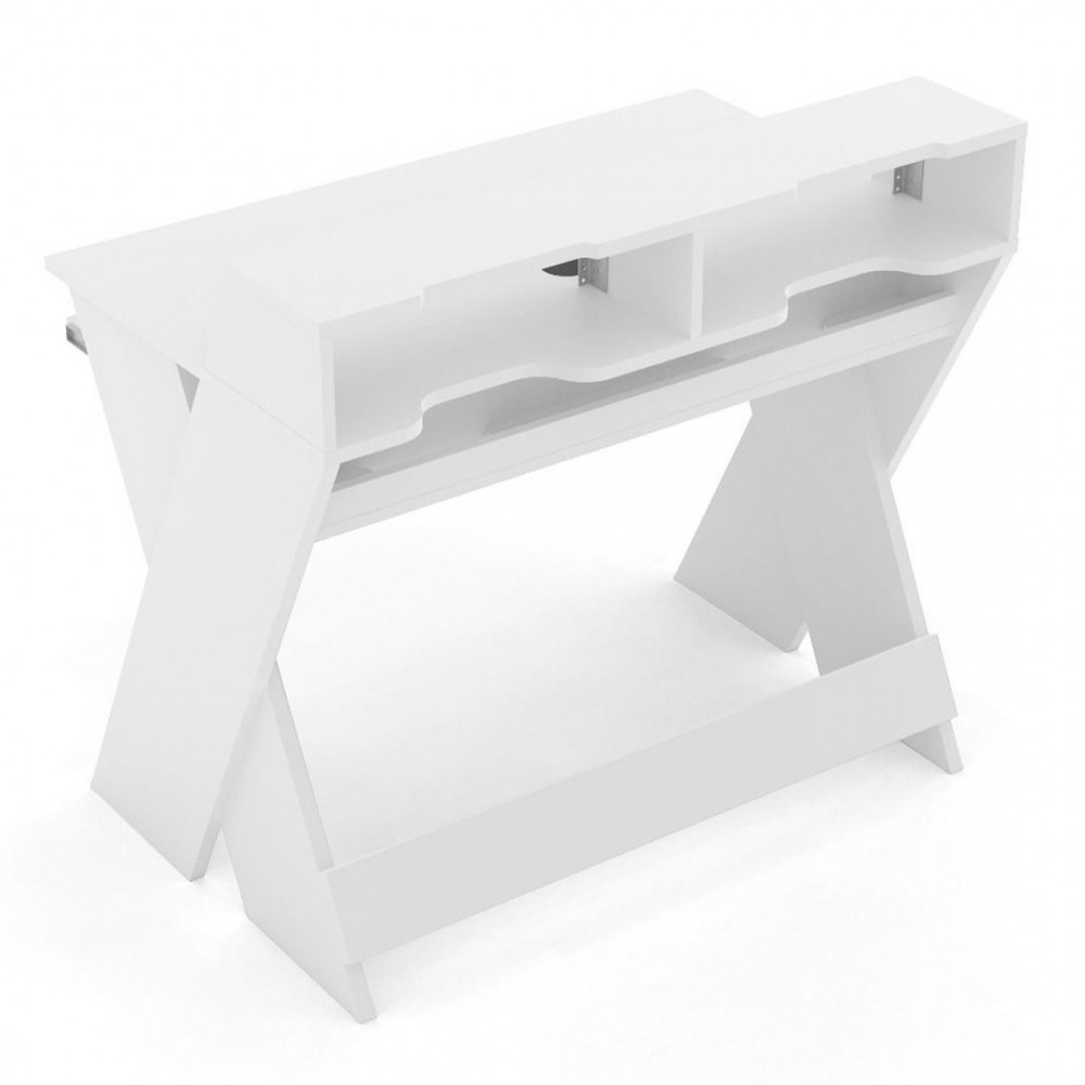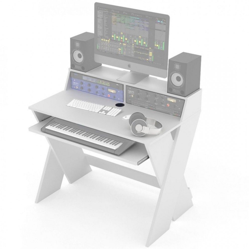 Nonostante le sue dimensioni ridotte, la workstation da studio può facilmente ospitare un laptop, un'interfaccia audio o un sintetizzatore. La superficie di lavoro nasconde un vassoio per tastiera estraibile abbastanza grande da contenere tastiere fino a 61 tasti o periferiche simili. Il vassoio della tastiera può essere installato a sei diverse altezze per rendere la produzione il più ergonomica possibile.