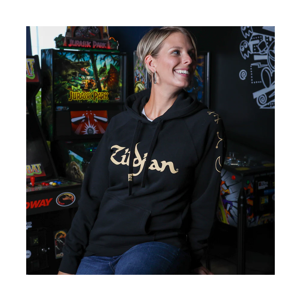 Rendendo omaggio al fondatore di Zildjian Avedis I, questa felpa con cappuccio extra-accogliente presenta i simboli alchemici di rame, stagno e argento - gli elementi della lega della famiglia Zildjian - lungo il braccio sinistro e un logo Zildjian dorato sul davanti. Realizzata in morbidissimo pile tri-blend, questa felpa pullover nera in tinta unita include spesse coulisse nere con un'etichetta Z tessuta ed una tasca a marsupio. Disponibile nelle taglie dalla XS alla 3XL, questa calda e comoda felpa con cappuccio è un must per ogni fan dei piatti Zildjian.