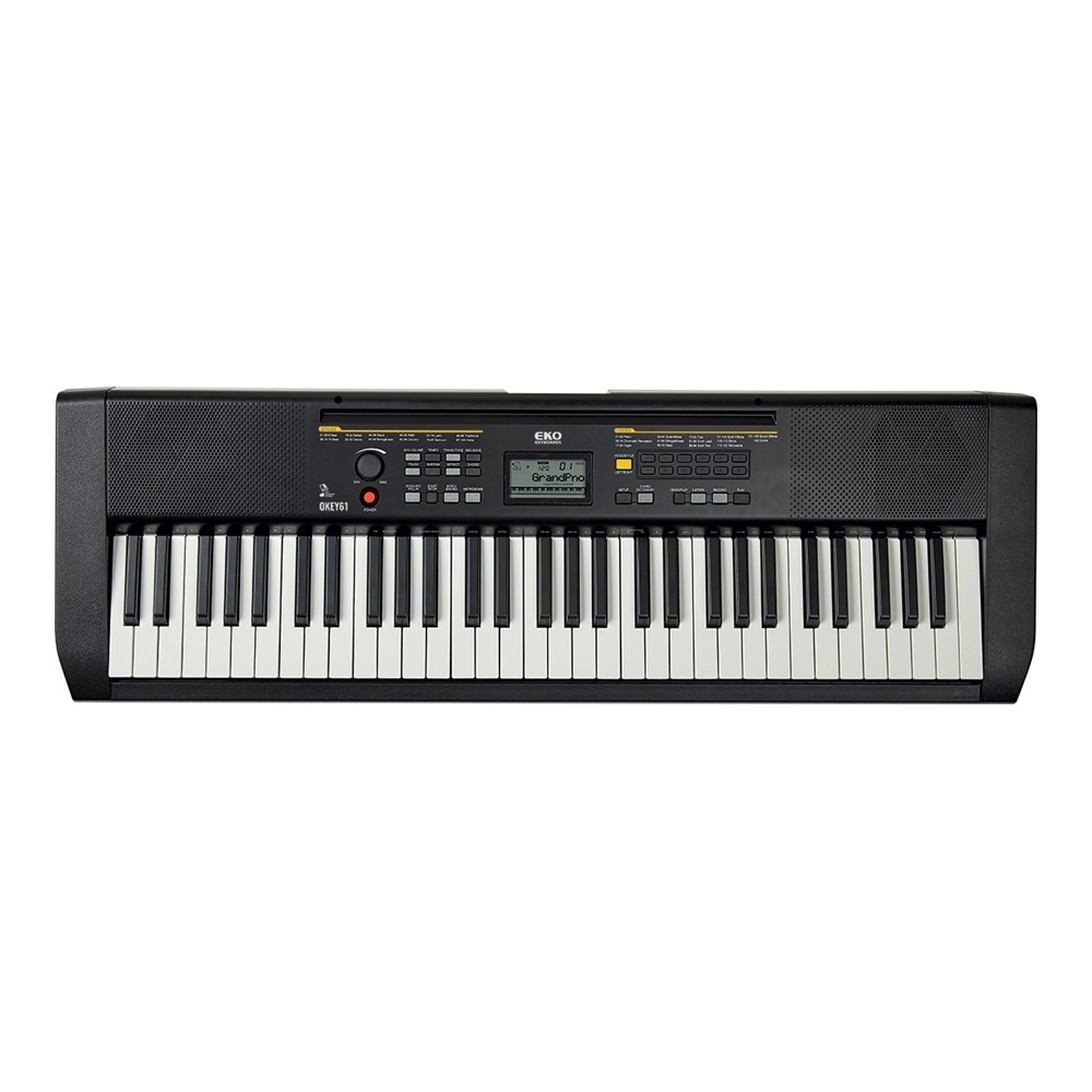 Okey 61 è la tastiera arranger 5 ottave (da C1 a C6), con tasti formato standard sensibili alla dinamica, ideale per avvicinarsi divertendosi allo studio della musica. Ti mette a disposizione 129 suoni di tutte le famiglie timbriche: dai pianoforti, ai fiati, agli archi, ai synt; mentre i 100 stili di accompagnamento offrono il supporto musicale di un'intera band, in grado di suonare tutti i generi musicali dal Rock al Pop, fino al Rap. La polifonia è di 32 note ed è possibile gestire agevolmente parametri come: sustain, vibrato, effetti DSP etc.